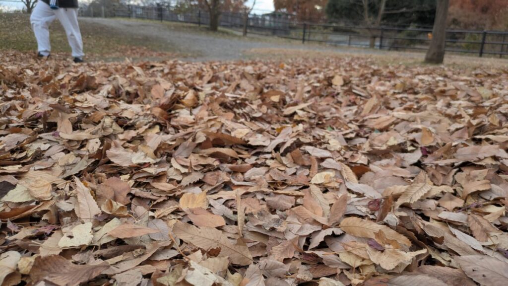 予想があたって、公園には山程の落ち葉あり、お子さんたちと、スタッフで雪合戦ならぬ落ち葉合戦をしてみんなで落ち葉まみれになりました。