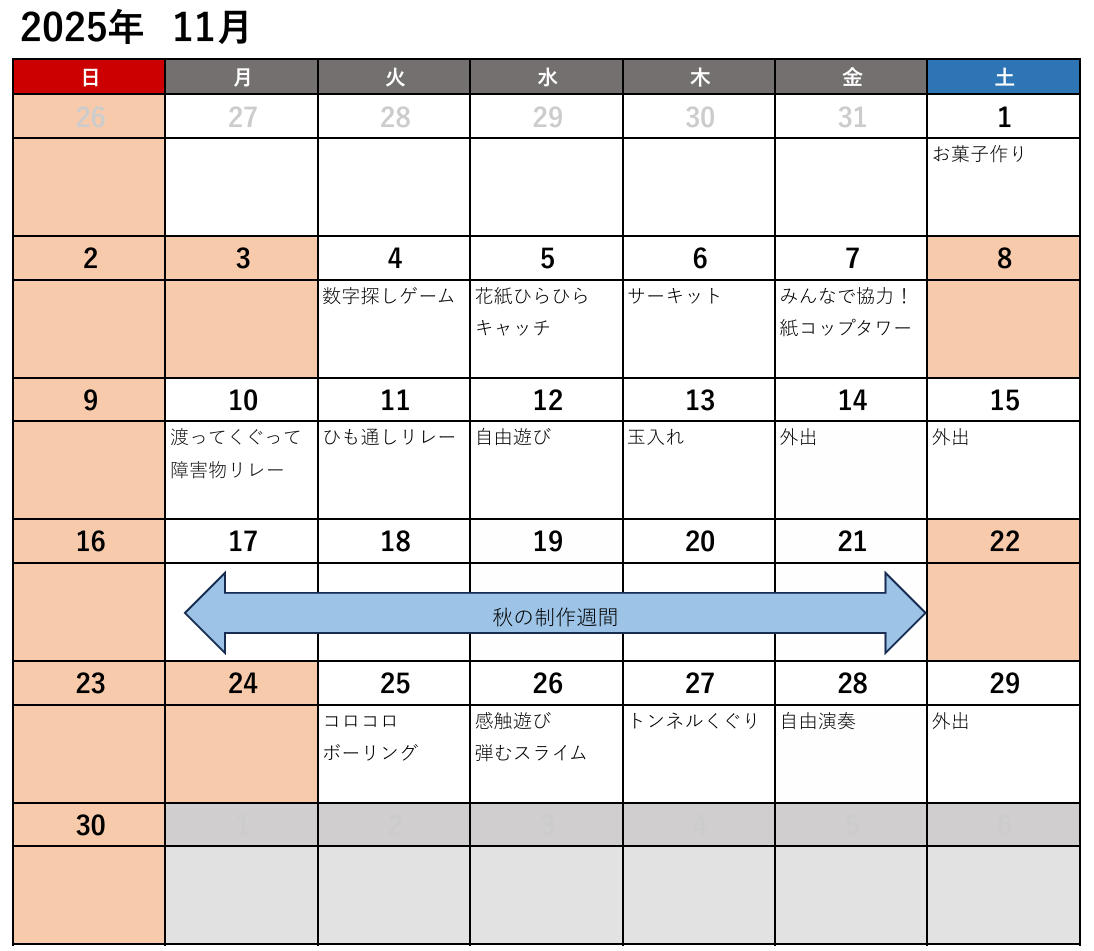 輝HIKARIみらいで実施するあそびやまなび、イベントのスケジュールです。